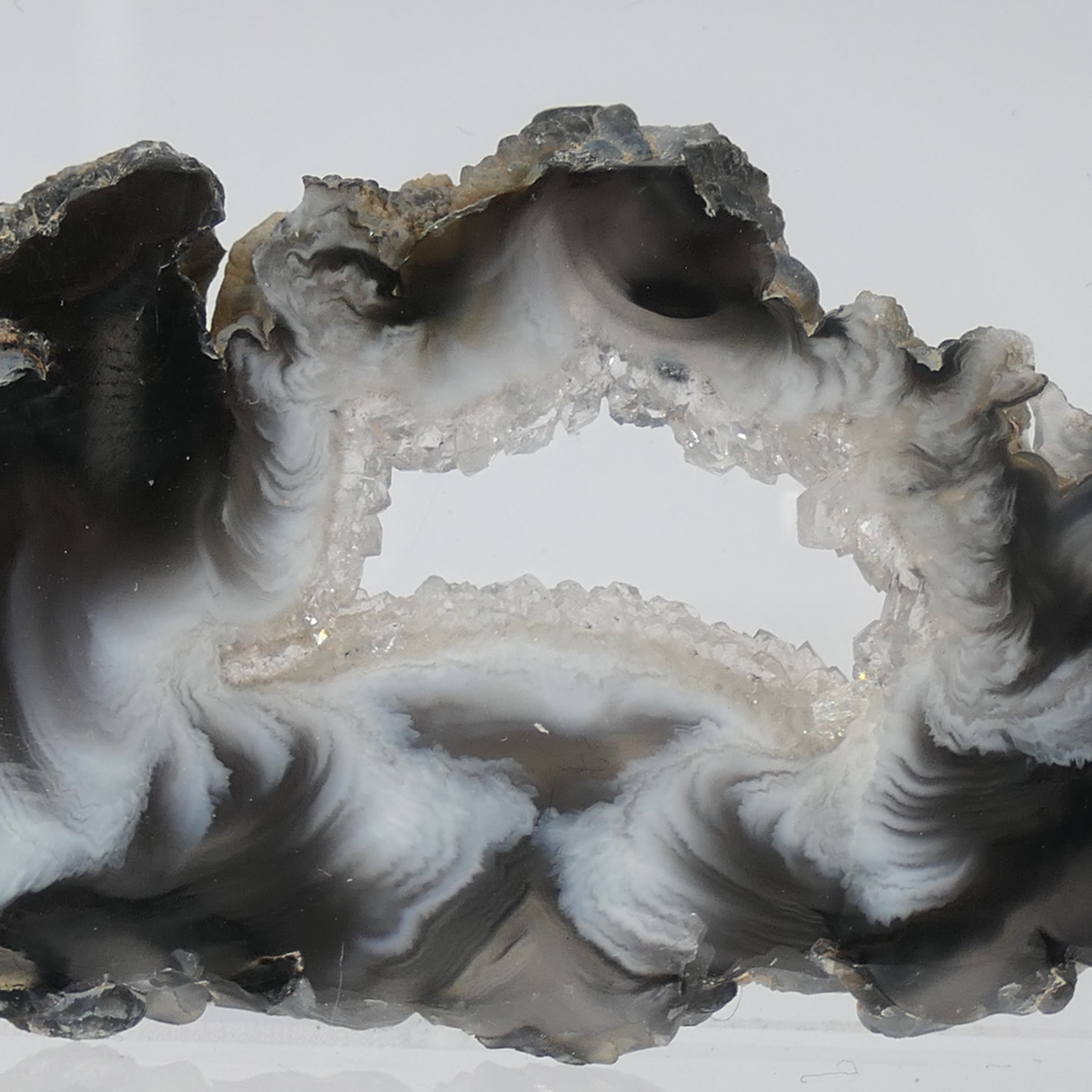 L’Agate est une Gemme majestueuse et merveilleuse qui appartient à la grande famille du Quartz. Elle permet d’attirer la chance, de prendre confiance en soi et d’avoir du courage mais aussi de se reconnecter à la nature. La forme de tranche permet d’observer la magnifique structure bandée de ce minéral fascinant.